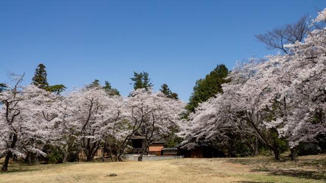 春の新府城の本丸周辺では、咲き乱れる沢山の桜を楽しむことができます。